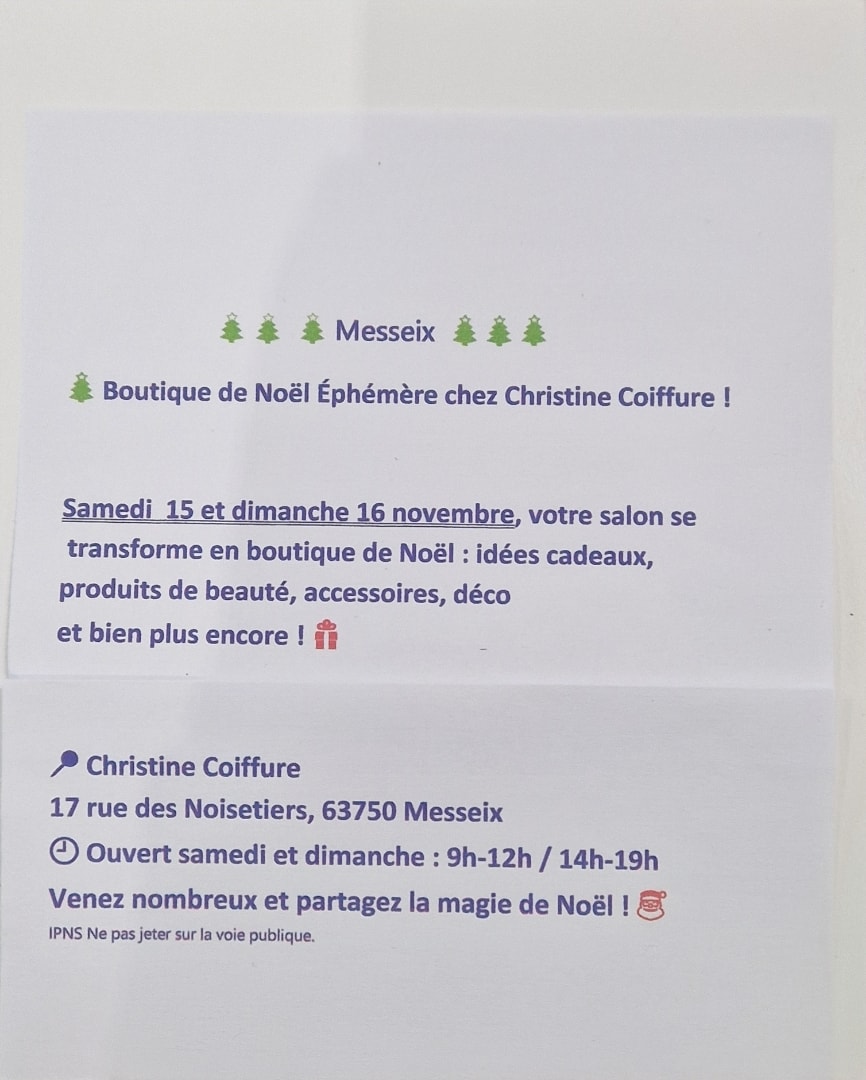 Christine vous attend pour l' ouverture de sa boutique éphémère